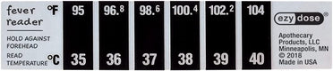 Details: Apothecary Fever Reader. This product provides a convenient alternative to traditional thermometers. Simply apply the Fever Reader to the forehead and it quickly reads temperature in both Fahrenheit and Celsius. Main features of the Fever Reader include: quick reading, reusable and extremely east to use. The fever reader takes the temperature in both Celsius and Fahrenheit. Great for kids and children.