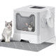 Tamiaia Large Cat Litter Box with 15.7''x23.6'' Heavy Mat, Enclosed Kitty Box with Litter Scooper, Odor-Urine-Proof, Non-Sticky, Easy Rinse Cleaning (Normal Grey)